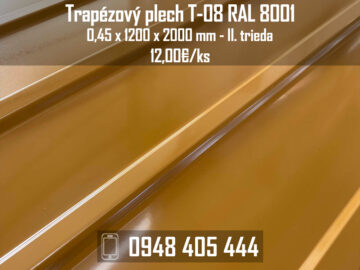 Trapézový plech T-08 RAL 8017 matný – Jarná akcia
