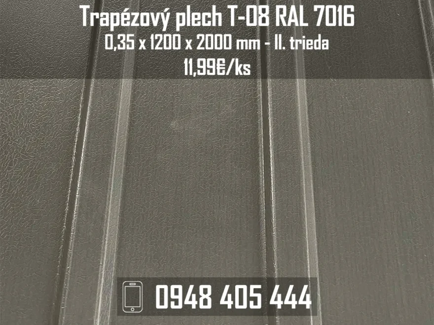 Názov | Trapézový plech T-08 RAL 7016 II. trieda |